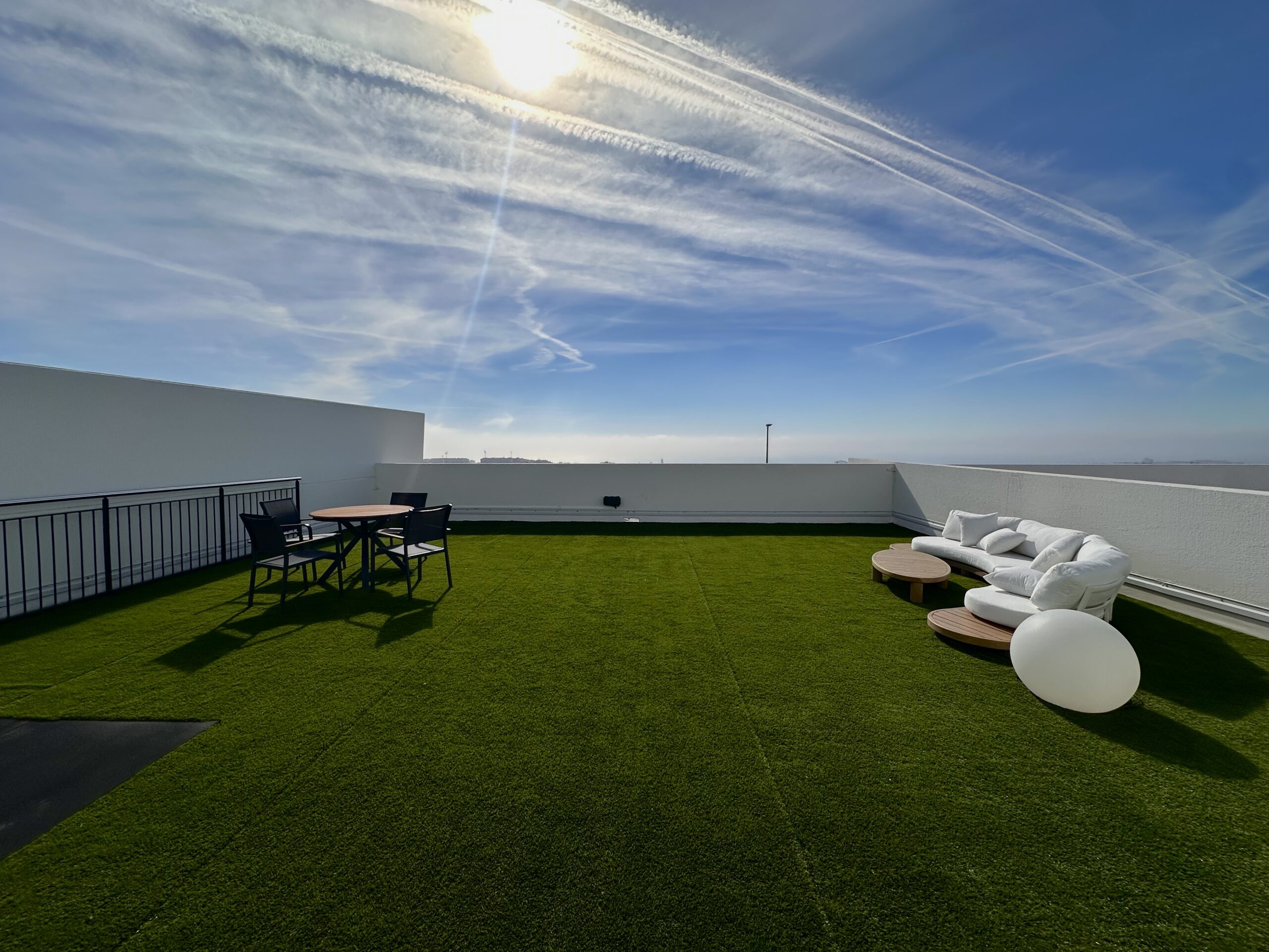 Terraza con vistas al mar y rack para entrenar: movilidad, accesorios, algo de fuerza y post-WOD con calma.